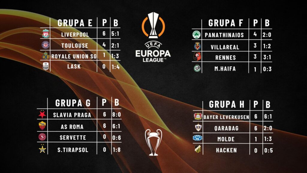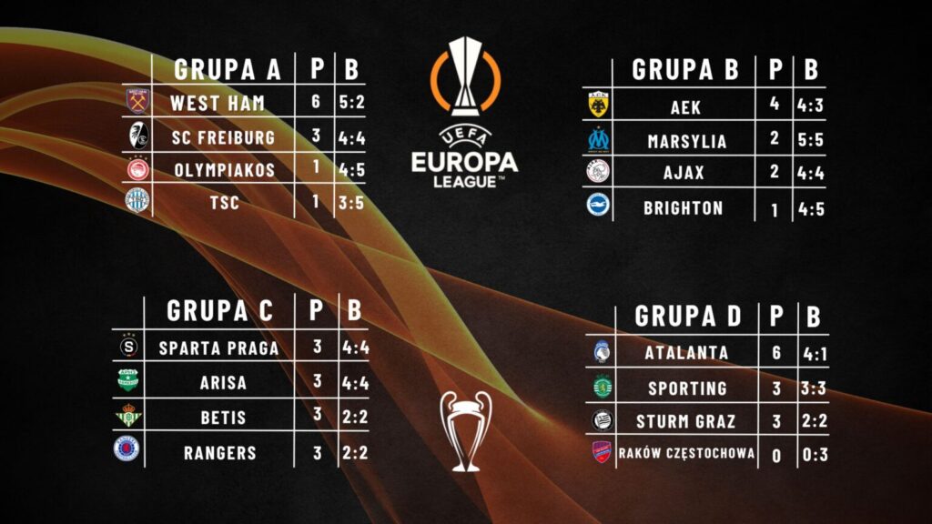 Kilka godzin później o trzecią wygraną powalczy Angielski Liverpool. Zawodnicy prowadzeni przez Jüergena Kloppa zagrają z Francuską Toulouse. Ewentualne zwycięstwo zapewni praktycznie awans do fazy pucharowej. Warto wspomnieć o niezwykle ciekawej potyczce w Rzymie. AS Roma José Mourinho zmierzy się z Slavia Praga. Obie ekipy mają na koncie sześć punktów i zajmują dwie pierwsze pozycje w grupie G. Na dole znajduje się terminarz i sytuacje we wszystkich grupach Ligi Europy 23/24.