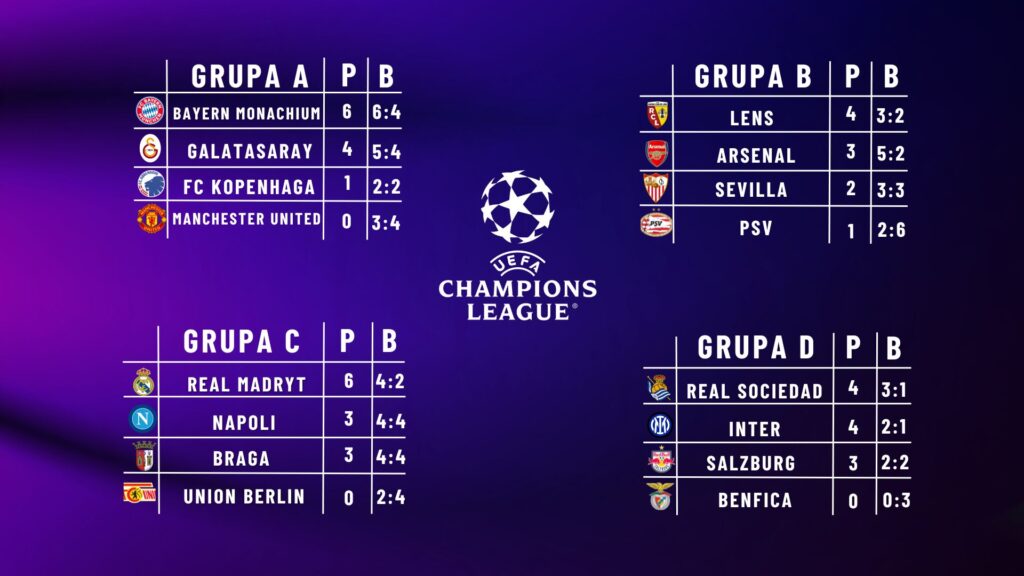 Dzisiejsza porażka może bardzo mocno skomplikować nadzieje dotyczące awansu do fazy pucharowej. Warto wspomnieć o potyczce Bragi z Realem Madryt. Popularni ⹂Królewscy” posiadają komplet punktów i dzisiejszym zwycięstwem mogą znacznie przybliżyć fakt awansu z grupy. Pierwsze gwizdki arbitrów staną się faktem już o godzinie 18:45. Wtedy to walkę o trzy punkty rozpocznie Inter Mediolan i Bayern Monachium. Na dole znajdziesz plan transmisji i sytuacje w grupach dotyczących dzisiejszego wieczoru.